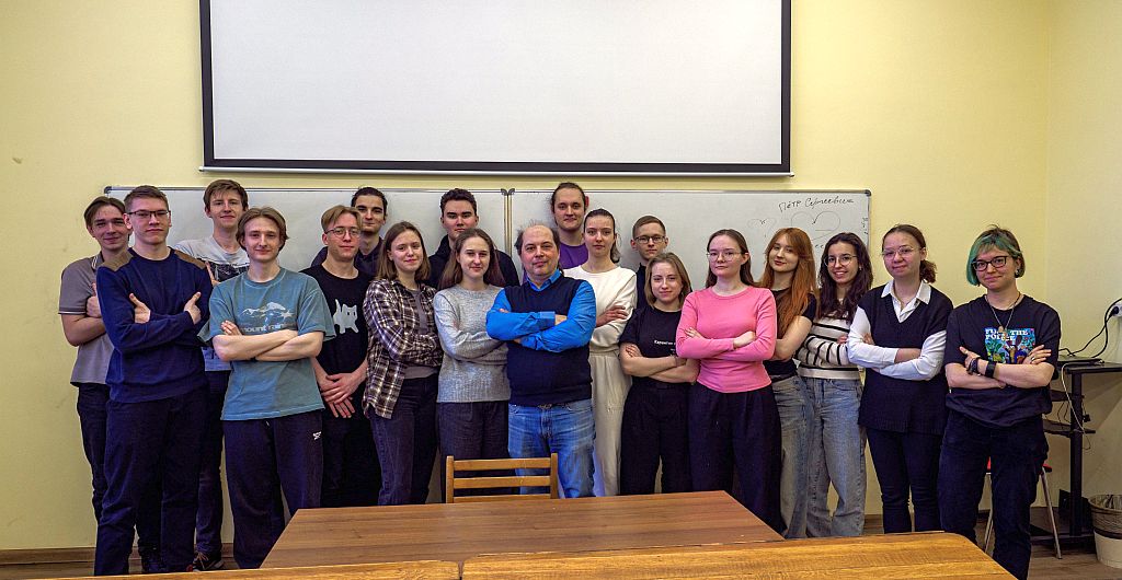 With Dr. Max Likhanov and first year students group 105 at Department of Chemistry MSU (April, 2024)